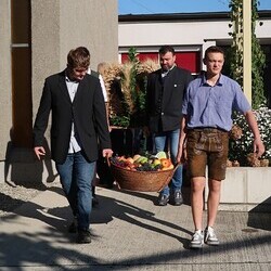 Wer war bei der Fronleichnamsprozession dabei (als wir beim Sorger vorbeimarschiert sind)?